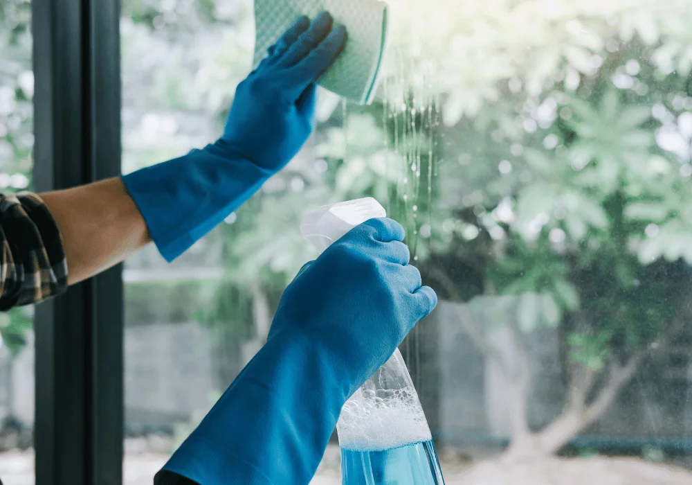 Detailed cleaning of panes, corners, sills, and edges.